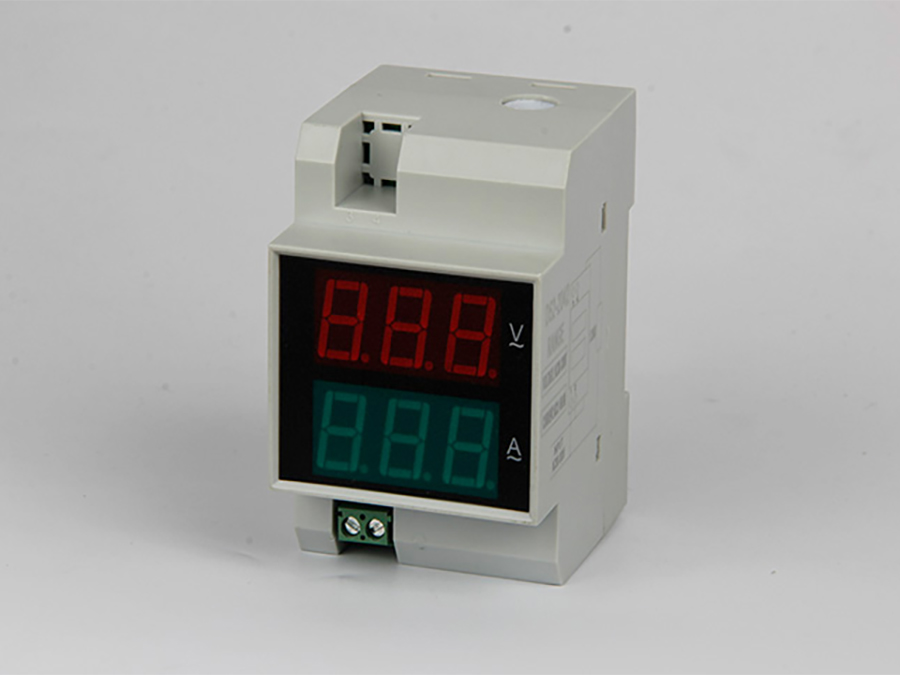 D52-2042型導軌式數顯交流電壓、電流雙顯儀表是在儀表上同時分別顯示被測量的交流電壓和交流電流。儀表測量電流范圍為99.9A,只需將測量回路的導線穿過儀表右邊小圓孔即可完成電流測量。