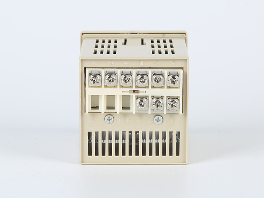 1、本儀表用安裝架固定在開孔內(nèi),儀表背面接線排的中、相為儀表供電的交流220VAC輸入,1、2、3腳,熱電偶儀表時:1腳接熱電偶正極,2腳接熱電偶負極;熱電阻儀表時:1腳接傳感器紅腳,2、3任意接,儀表總、高、低為一組開關(guān),當儀表設(shè)定溫度高于指示溫度時,總低通、總高斷,同時綠燈亮、紅燈滅;當儀表設(shè)定溫度低于實際指示溫度時,總低斷、總高通,同時紅燈亮、綠燈滅。